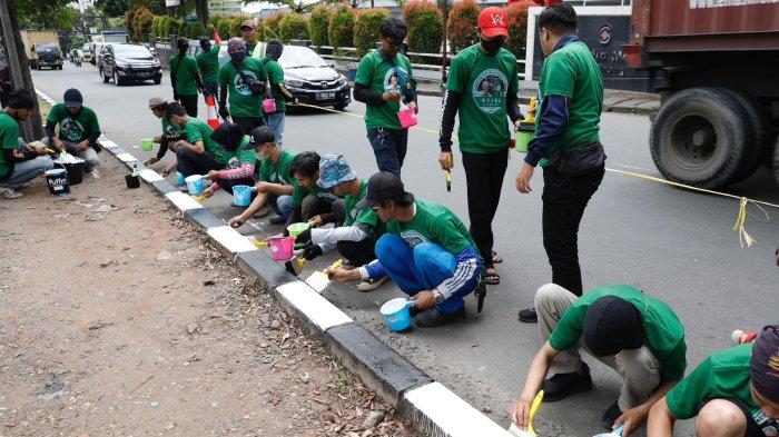 Aksi pengecatan separator dan bersih-bersih dilakukan di Jalan Raya Mayor Oking Atmaja, Cibinong, Kabupaten Bogor, Jawa Barat untuk memberi rasa aman.