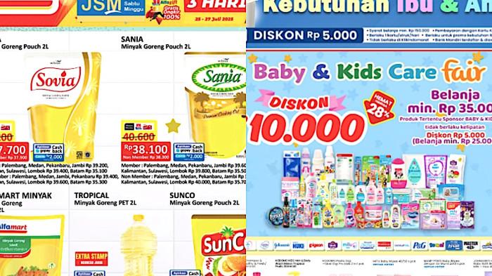 Waktunya gajian, simak promo Jumat Sabtu Minggu atau JSM terbaru dari Alfamart dan Indomaret, Jumat (25/7/2025).