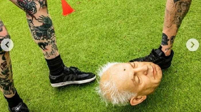Replika kepala Perdana Menteri Israel Benjamin Netanyahu ditendang-tendang dalam permainan sepak bola di New York, Amerika Serikat.