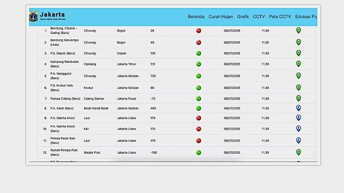 Berikut ini kondisi pintu air di Jakarta, Selasa (8/7/2025), sebagian dalam tingkat bahaya. Karena semakin banyak perumahan terendam banjir