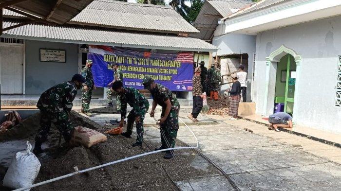 Tim Satgas Karya Bakti Komando Armada I TNI AL menggelar kegiatan karya bakti di Pesisir Pantai Sumur, Banten